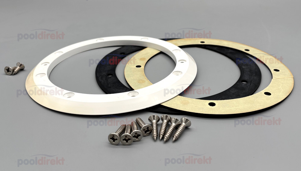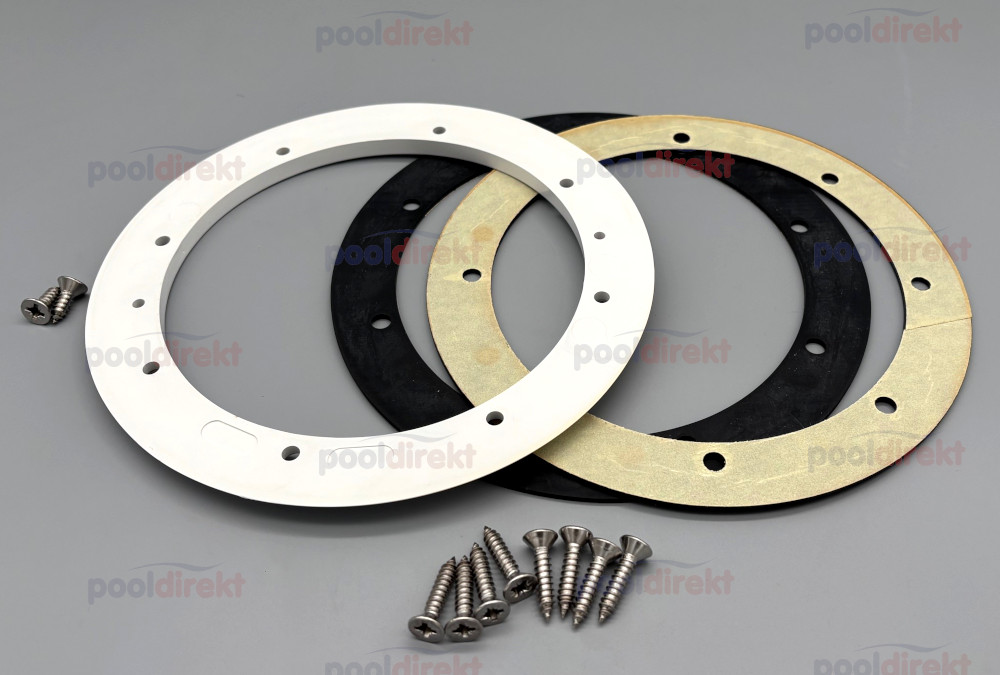 Flanschsatz bestehend aus Flansch, 2 selbstklebenden Dichtungen und 10 Schrauben für Bodenablauf BWT/Aquareva als Ersatzteil - Flansch leicht vergilbt, daher Sonderpreis!.