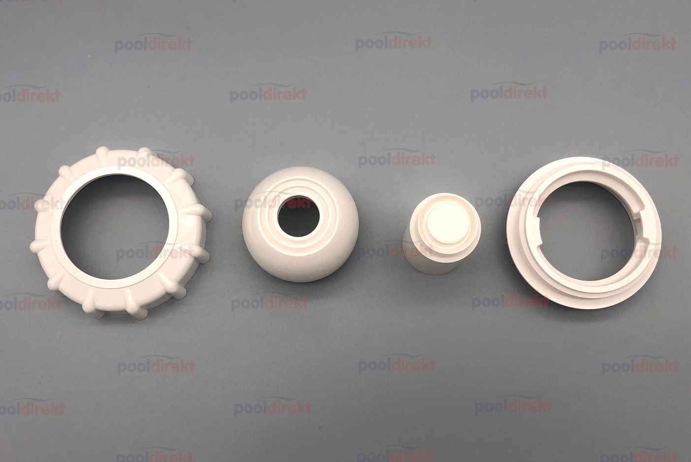 Die Überwurfmutter wird nur bei älteren Modellen der Astral Einlaufdüse benötigt. Mit dem Durchschlag-Zylinder drücken Sie die gewünschte Öffnungsgröße in die Düsenkugel.