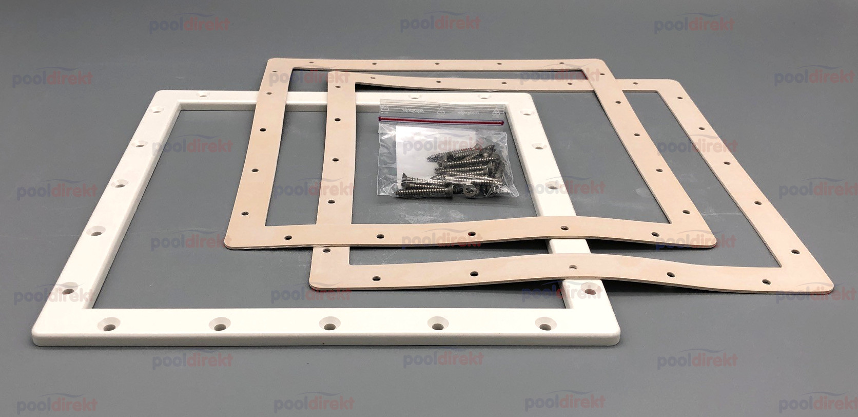 Ersatzteil-Paket passend für OWM Kunststoff Scheinwerfer eckig (für Folien- und Fertigbecken) bestehend aus Flansch, 2 Dichtungen und 20 Schrauben.