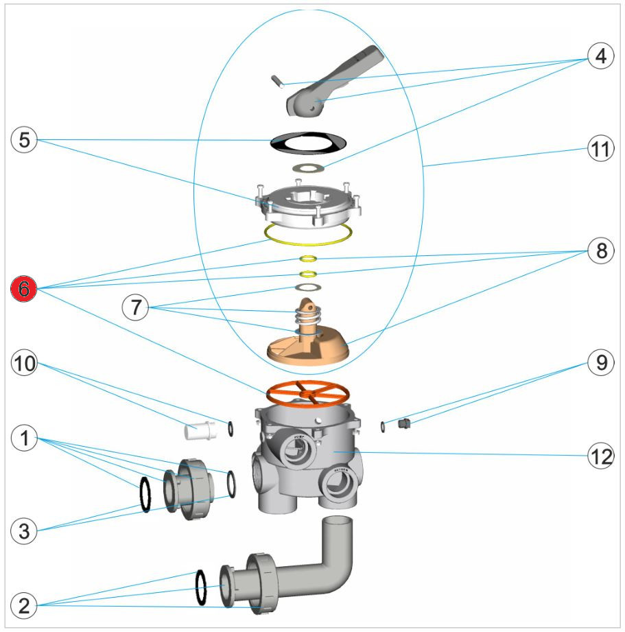 Produktinformationen "Dichtungssatz 6-Wege Ventil 1 1/2" alt"