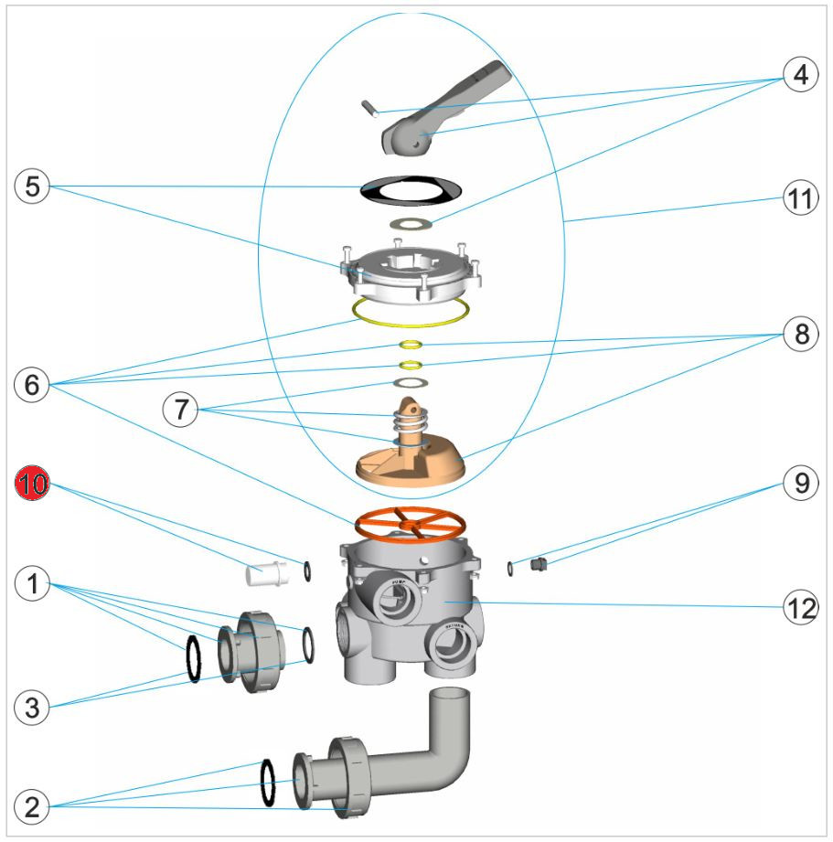 Schauglas mit Flachdichtung für sehr viele Astral 6-Wege-Ventile, siehe Liste unten.