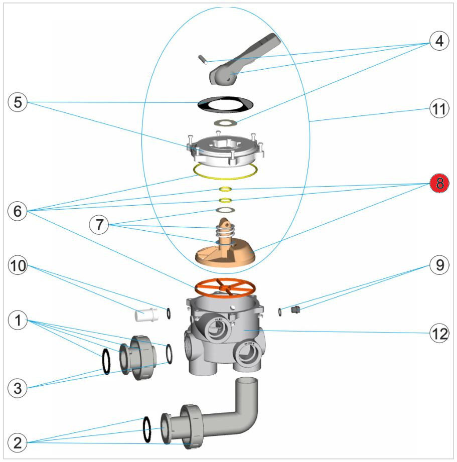 Ventilteller mit Dichtungen für folgende Astral 6-Wege-Ventile 1 1/2":