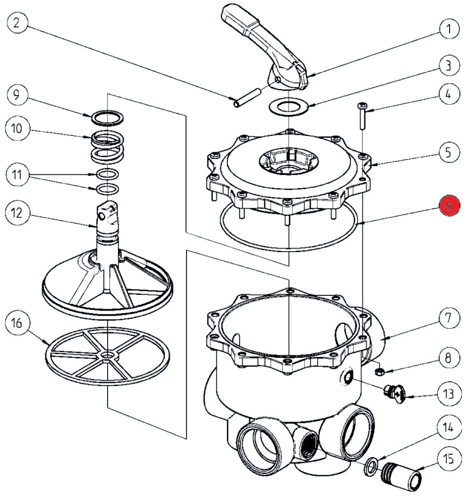 O-Ring für Ventildeckel für Praher 6-Wege-Ventile 2" Ocean V6.