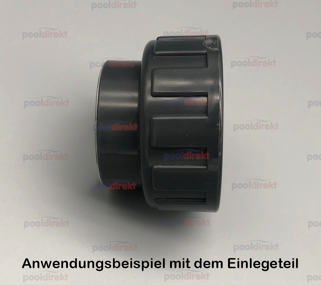 Mit der Überwurfmutter 2 1/4" und dem Einlegeteil können Sie Ihre Astral Sena Pumpe an Ihre DA 50 Verrohrung anschließen. In das Einlegeteil wird das 50er Druckrohr eingeklebt und dann mittels Überwurfmutter an die Pumpe geschraubt.