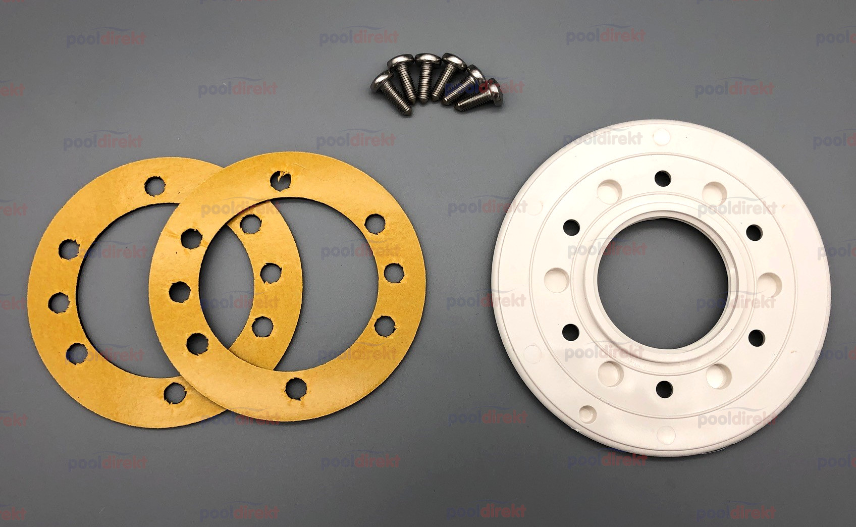 Flansch, 2 Dichtungen und Schrauben zur Astral Einlaufdüse.