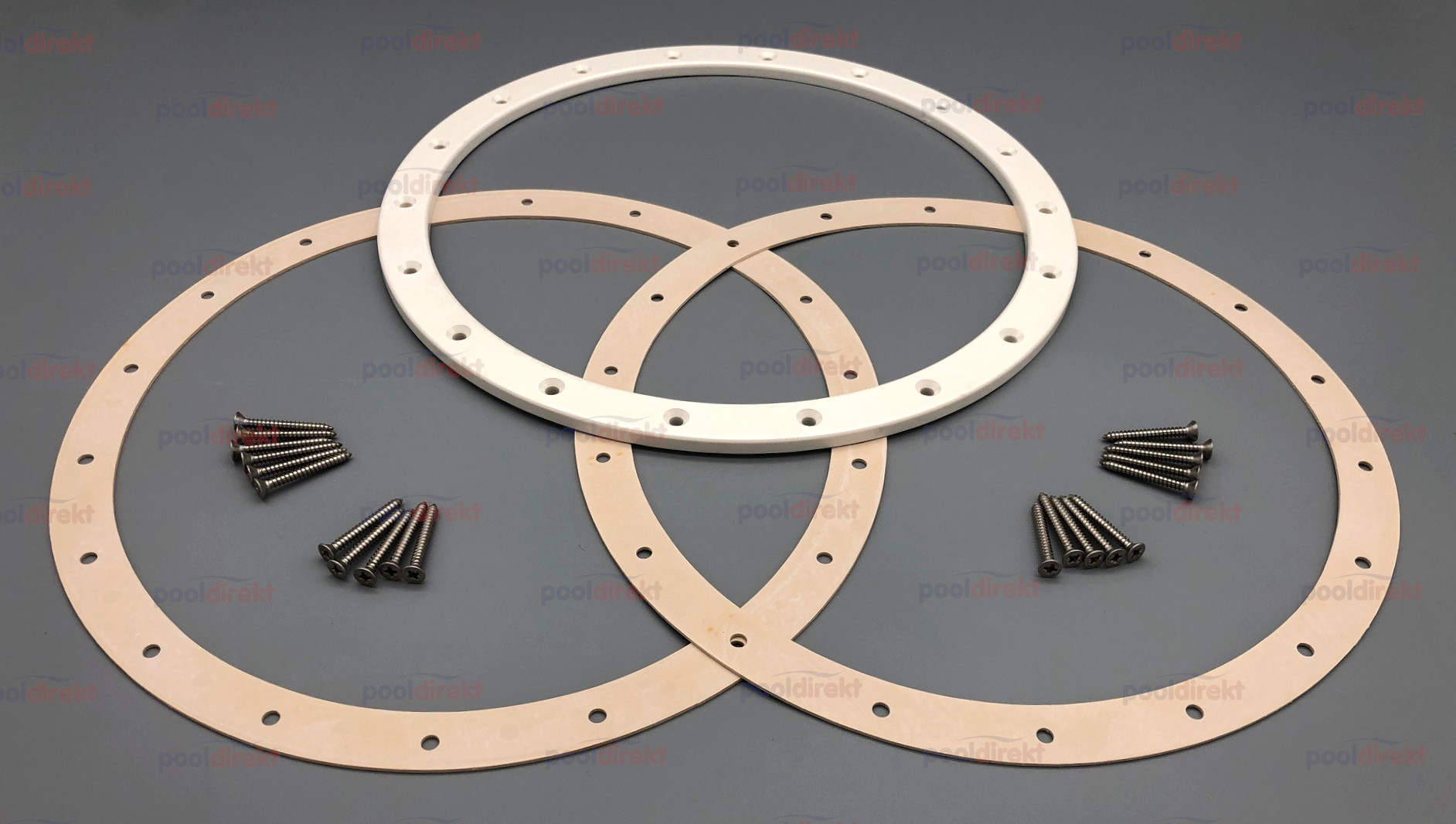 Passend für OWM Unterwasserscheinwerfer rund für Folien- und Fertigbecken. Paket besteht aus Flansch, 2 Dichtungen und 20 Schrauben.