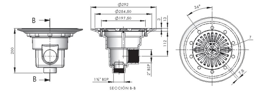 Eigenschaften "Bodenablauf rund mit versenktem Flansch"