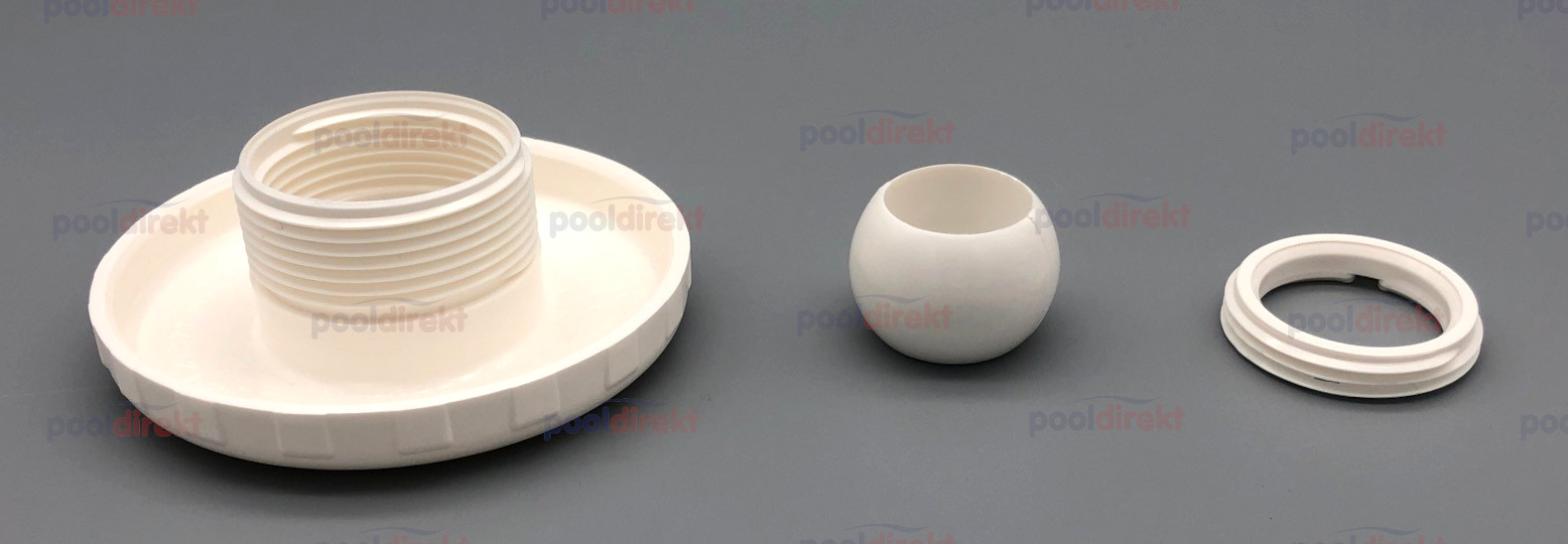 Verstellbare Kugel, zum Einschrauben in die Mauerdurchführung (siehe Zubehör).