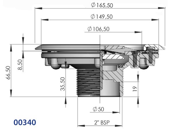 - Anschluss: 2” A.G. / Klebemuffe 50 mm