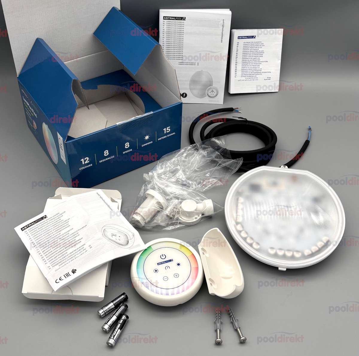 ACHTUNG - das enthaltene Leuchtmittel lässt sich NUR mit der Plug&Play Fernbedienung steuern, nicht über das Connect-Modul, nicht mit anderen Astral Fernbedienungen!