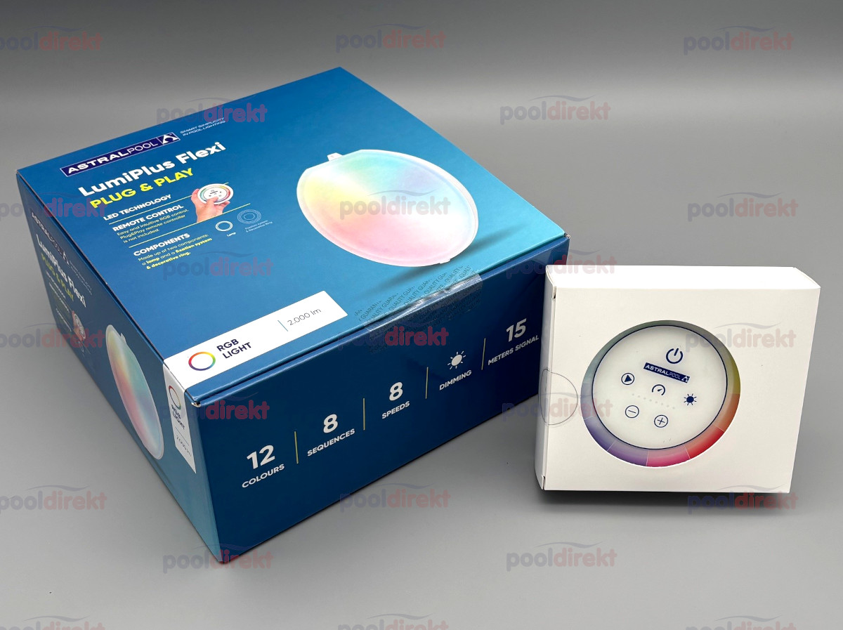 - Mit der enthaltenen LumiPlus Plug&Play Fernbedienung können Sie Ihre Poolbeleuchtung steuern (Farbe, Helligkeit, Farbwechselprogramme).