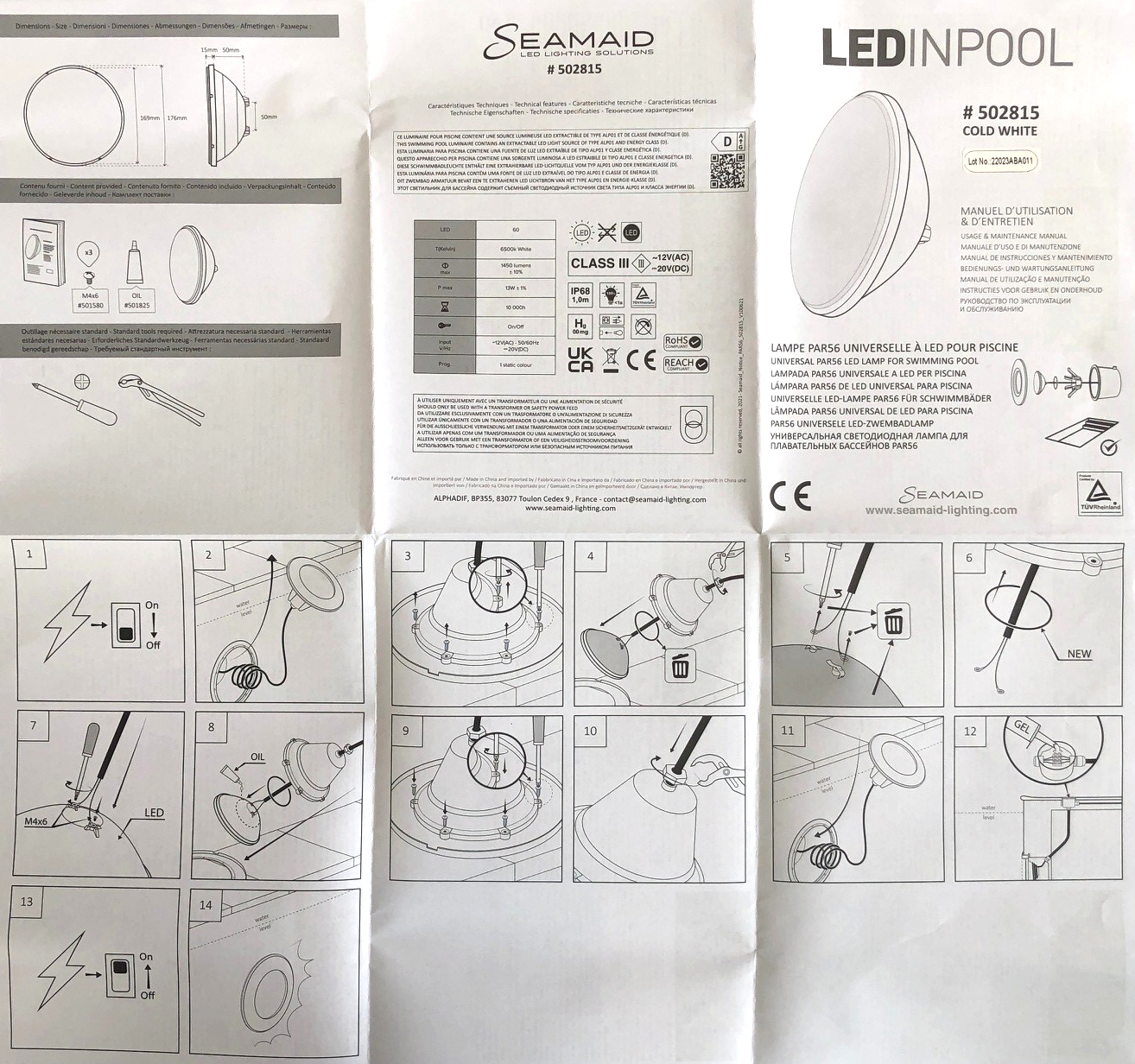 Universelle LED-Lampe PAR56 mit 13 W für in die Erde eingelassene Schwimmbecken als Ersatz für herkömmliche 300 W Glühlampen. Passt in vorhandene Gehäuse und ermöglicht so eine einfache Nachrüstung auf stromsparende LED Pool Beleuchtung.