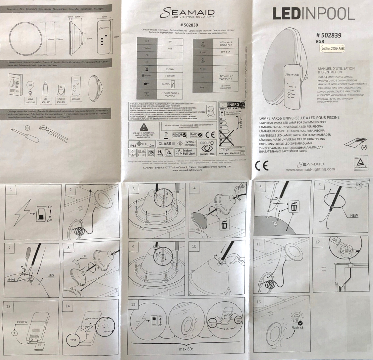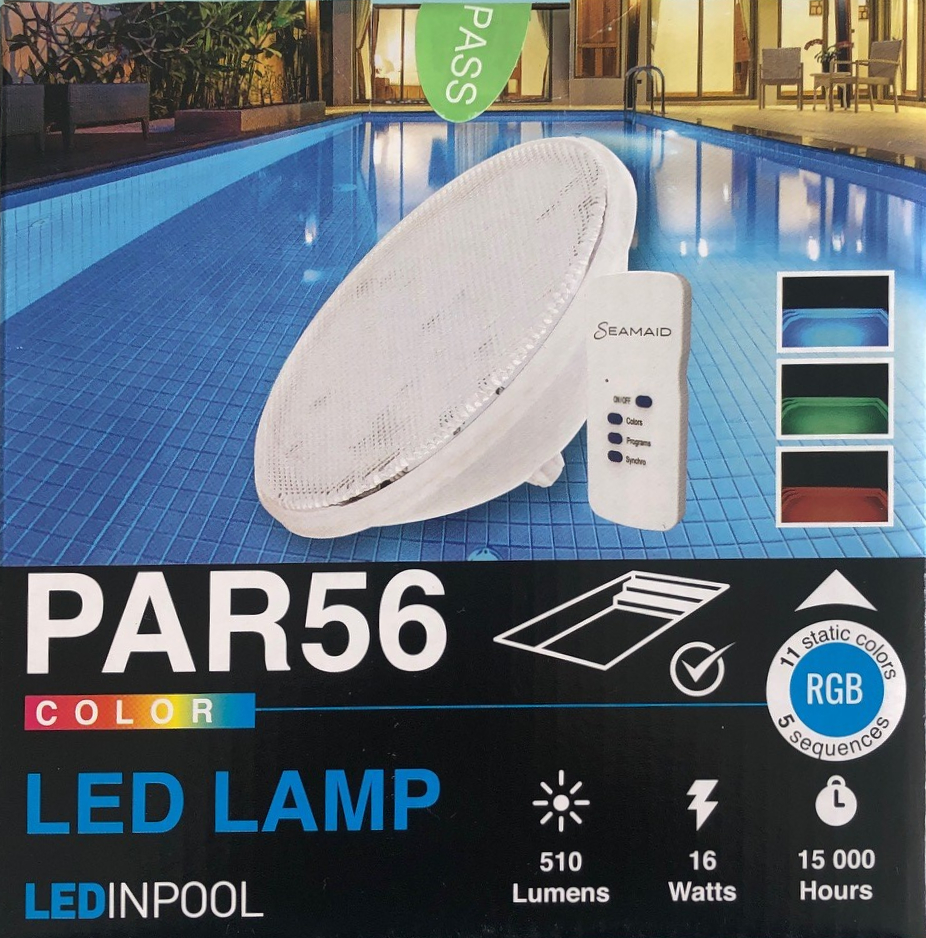 Universelle LED-Lampe PAR56 mit 16 W für in die Erde eingelassene Schwimmbecken als Ersatz für herkömmliche 300 W Glühlampen. Passt in vorhandene Gehäuse und ermöglicht so eine einfache Nachrüstung auf stromsparende LED Pool Beleuchtung.