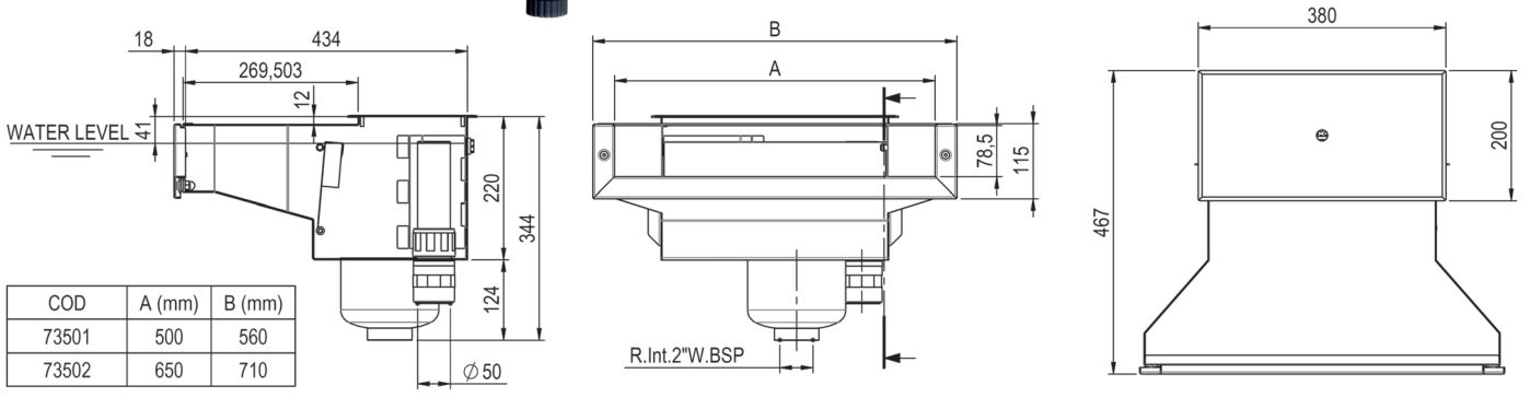 • Skimmeröffnung 500 x 78,5 mm