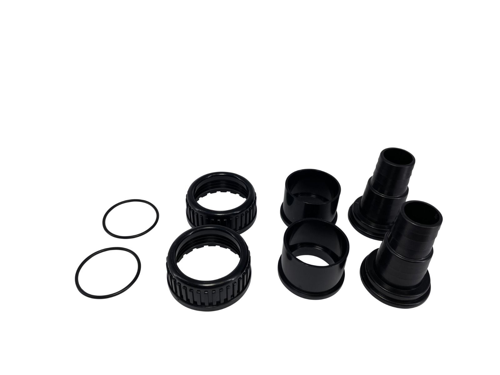 - Anschlüsse mit Tülle 32/38 mm oder 50 mm Klebemuffe (siehe Foto)