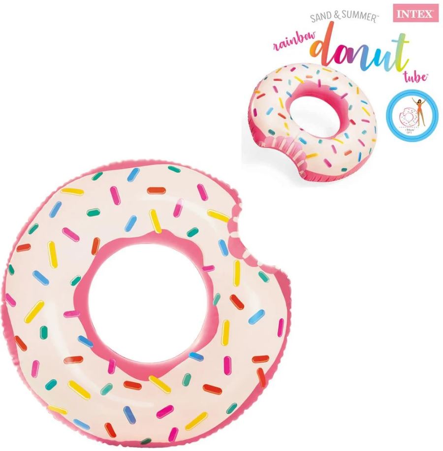 Aufblasbarer Schwimmreifen in Donut-Form - rosa mit weißer Glasur und buntem Streusel. DER Hingucker am Pool, Strand und auf Partys!