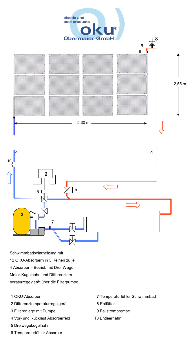• Wir empfehlen bei Pools mit Poolabdeckung ca. 50 % der Beckenoberfläche als Absorber Oberfläche.