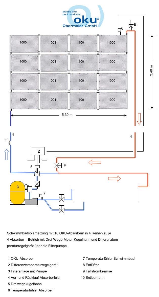 - Wir empfehlen bei Pools mit Poolabdeckung ca. 50 % der Beckenoberfläche als Absorber Oberfläche.