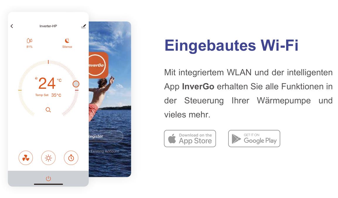 - Integriertes WLAN - steuern Sie die Wärmepumpe über die InverGo App