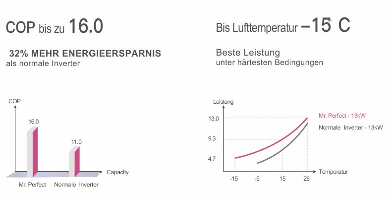 - Hoch energieeffizienter Betrieb – C.O.P. bis zu 16,0