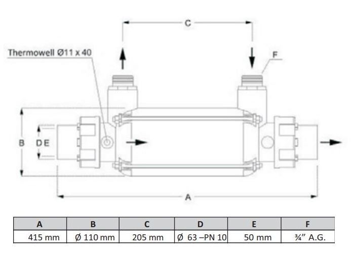Der Daprà Pool Wärmetauscher ist als Wellrohr-Schlangenwärmetauscher im Gegenstromprinzip konzipiert, wodurch dieser Wasser/Wasser Wärmetauscher sehr energieeffizient arbeitet. Das Heizrohr ist ein Titanwellrohr. Das druckbeständige Kunststoffgehäuse des Schwimmbad Wärmetauschers ist korrosionsbeständig. Die einzelnen Bauelemente des Daprà Wärmetauscher werden mit Silikon abgedichtet. Diese Dichtungen garantieren eine lange Lebensdauer des Wärmetauschers. Der Wärmetauscher für Pools wird direkt oder im Bypass in den Badewasserkreislauf eingebunden (empfohlen: Bypass).