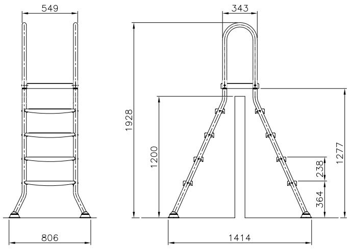 Eigenschaften "Edelstahl-Aufstellbeckenleiter D 43 V2A"