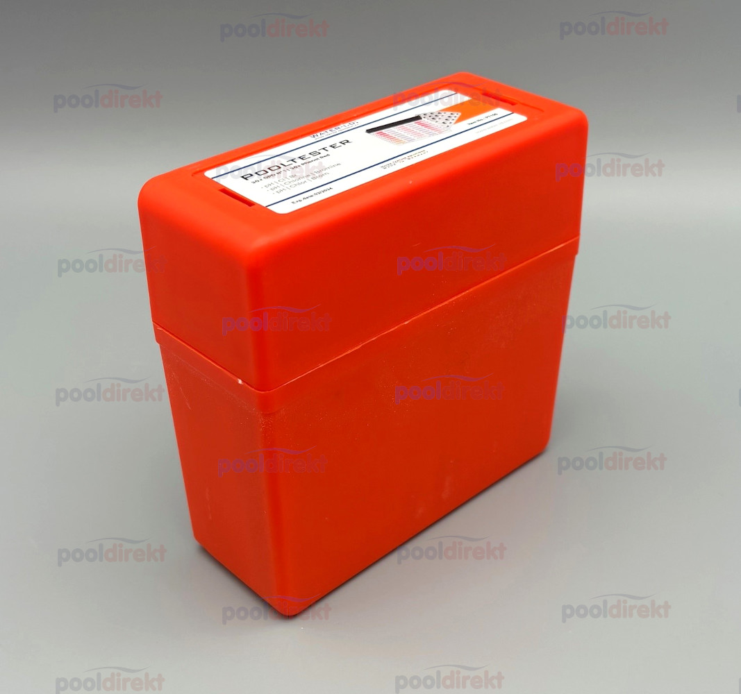 Für die optimale Pflege und Wirkung der Pooldesinfektion ist eine wöchentliche Überprüfung der Wasserwerte notwendig. Mit diesem klassischen Schütteltester lassen sich relativ genaue Werte ermitteln.
