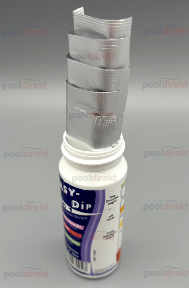 - Der Easy Dip Wasserteststreifen misst den Chlor-, pH- Wert und die Alkalinität