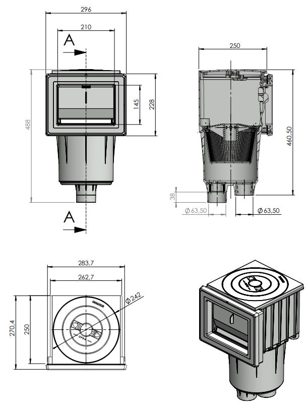 Astral Skimmer Nuevo (SPS 250) in 2 Farben mit Blende für Beton-Folienbecken.... mehr