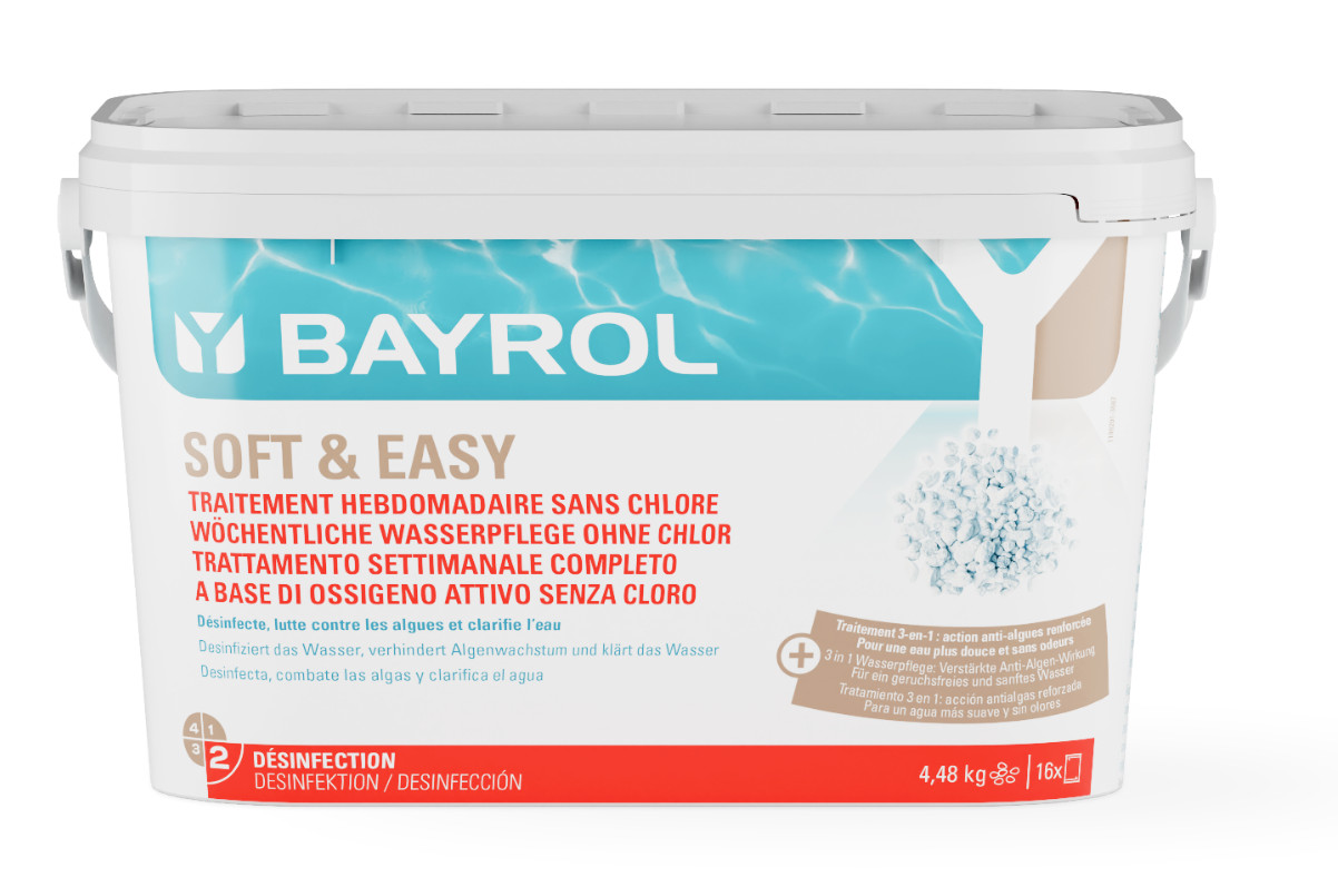 Soft & Easy ist die chlorfreie Alternative für die Wasserpflege. Die Granulat-Kombination auf Basis von Aktivsauerstoff sowie Algizid pflegt das Wasser für eine Woche. Zusätzlich enthält Soft & Easy einen Klareffekt, der das Poolwasser noch brillanter macht und einen Härtestabilisator, der Kalkausfällungen verhindert. Der bereits vorportionierte Doppelbeutel pflegt das Wasser für eine Woche und macht die Dosierung denkbar einfach.