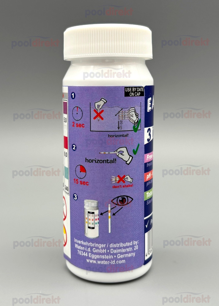 - Der Easy Dip Wasserteststreifen misst den Chlor-, pH- Wert und die Alkalinität
