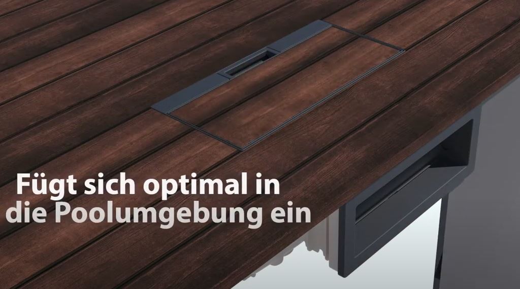 Den Deckel dazu gibt es in weiß, beige/sand, grau und anthrazit - wählen Sie den aus, der am besten zu Ihrer Poolumrandung passt. Der Innenteil des Deckels ist mit Klipsen befestigt. Dieser kann entfernt und mit dem Material Ihrer Poolumrandung befüllt werden (Holz, Stein, Fliesen, etc. - siehe Fotos).